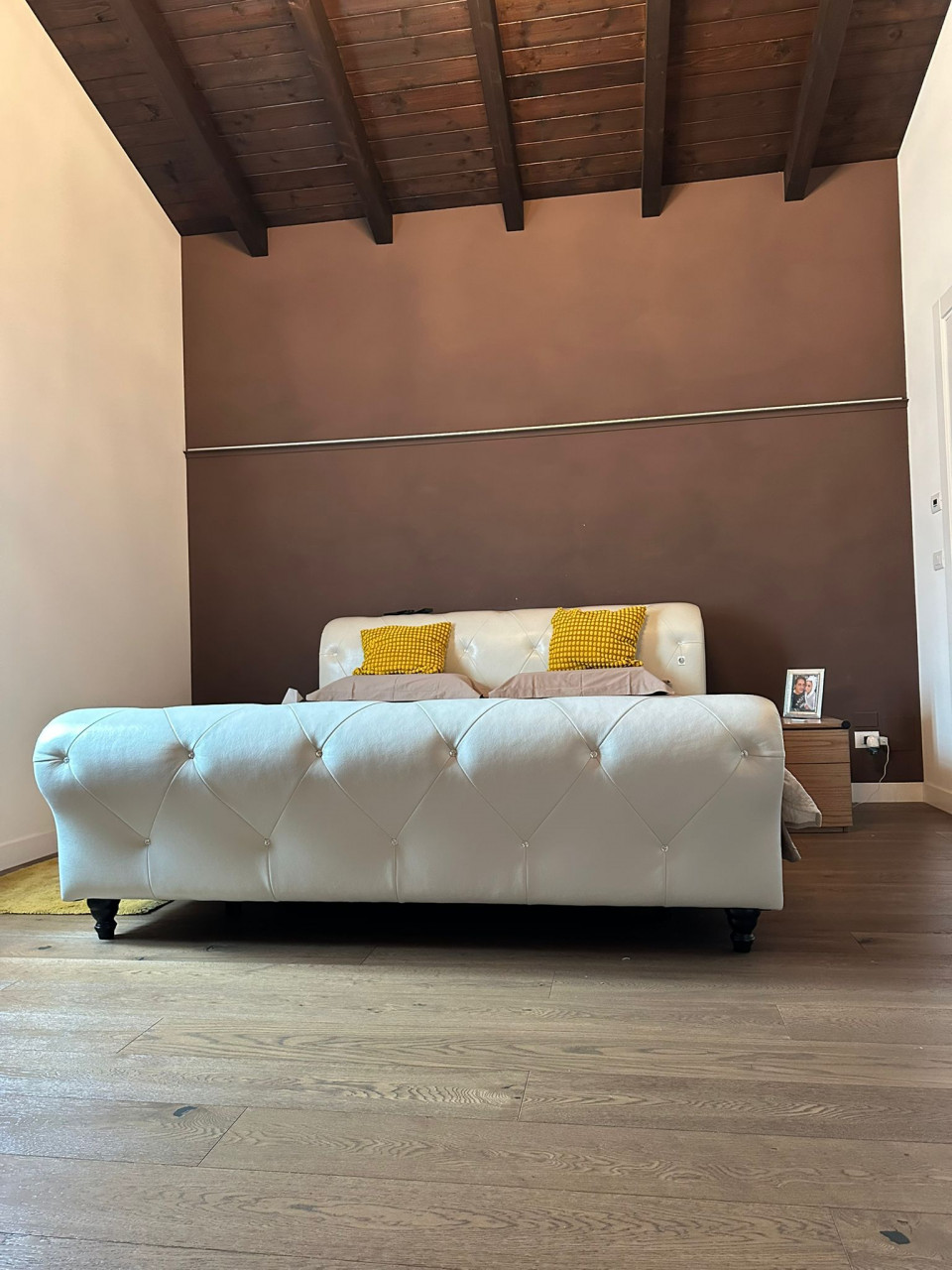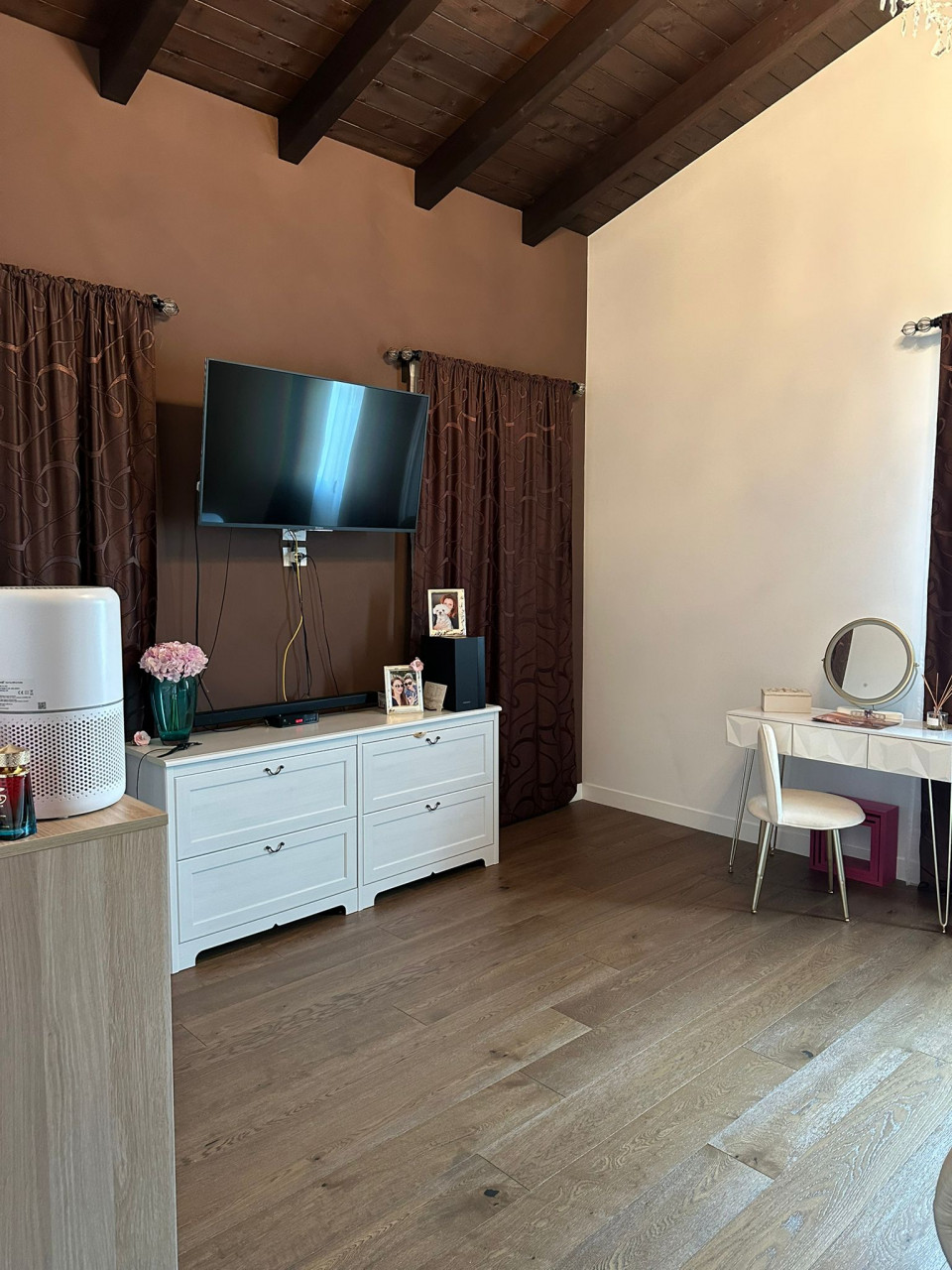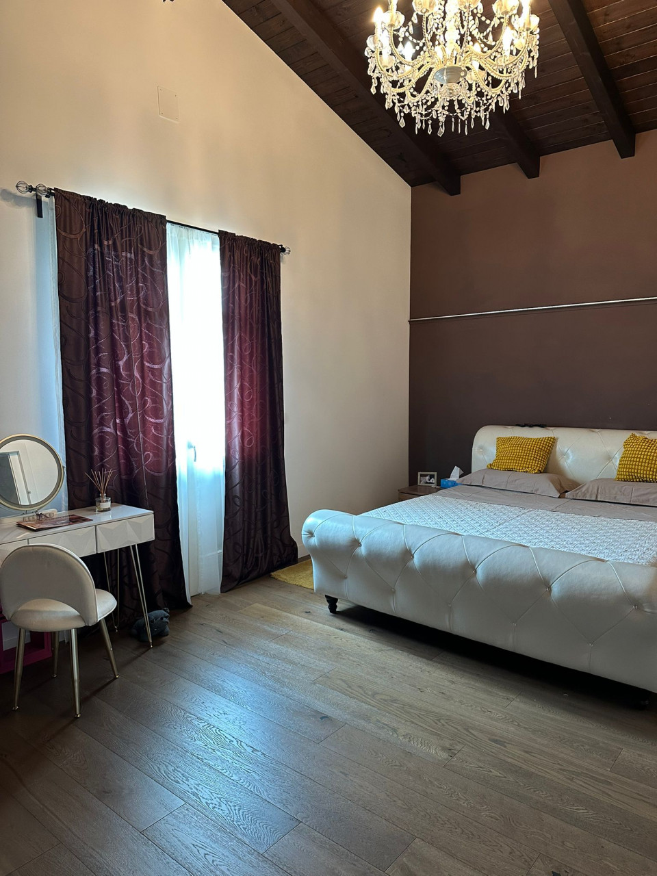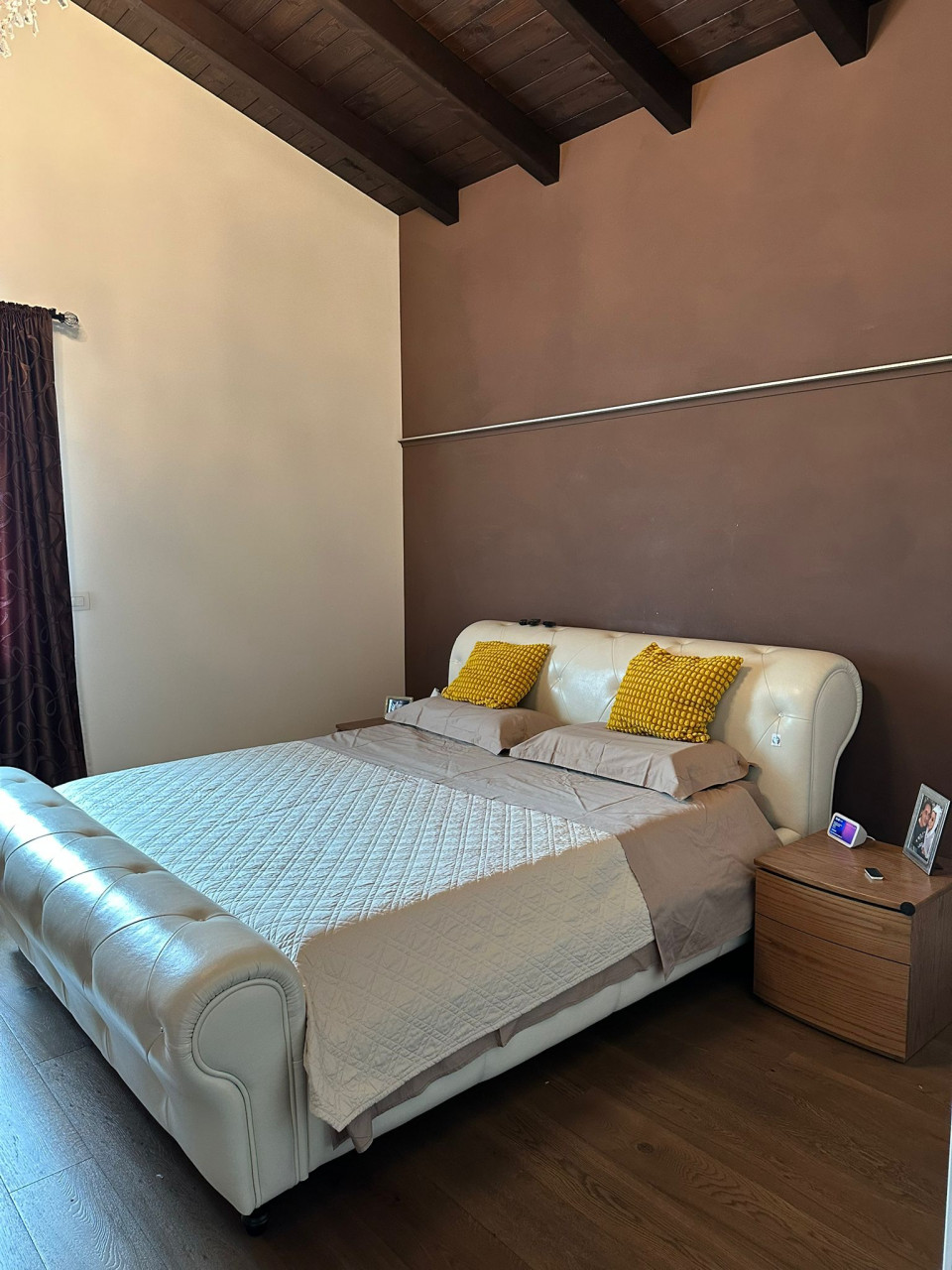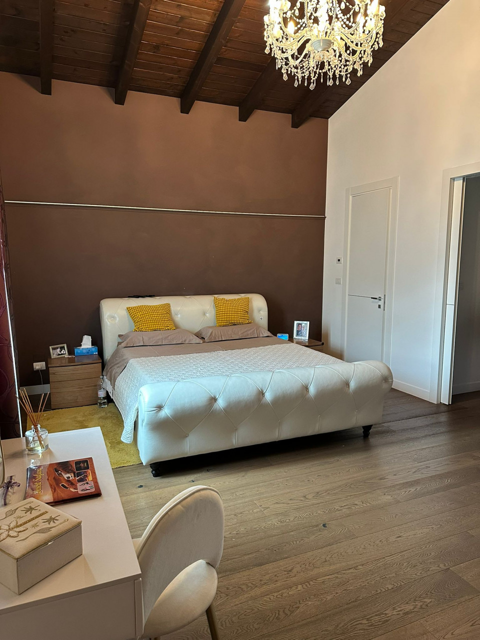 Al piano terra troverete un ampio open space luminoso che invita alla convivialità, corredato da una camera matrimoniale accogliente e un servizio elegante. Al secondo livello sono disponibili tre spaziose camere da letto servite da doppi servizi moderni: gli interni sono caratterizzati da tetti in legno a vista che conferiscono calore all'ambiente oltre ad aria condizionata per il massimo del comfort.